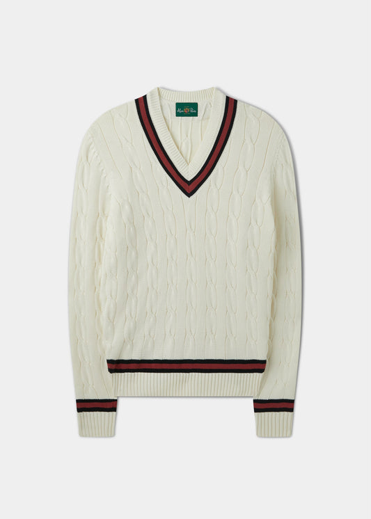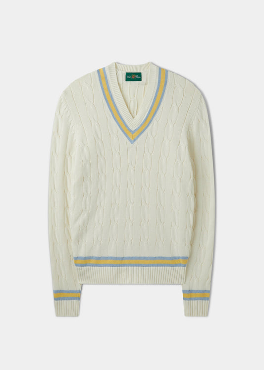 The timeless cricket jumper is now a staple of every collection. Whilst it retains its traditional cable structure, it's enhanced by contemporary colours and trims and continues to be one of our most popular garments.